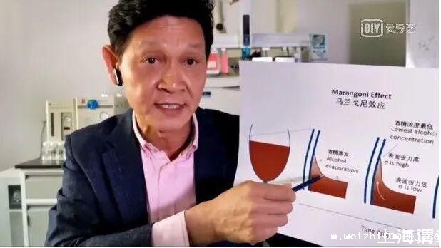 所以说附着力、表面张力和重力这三个力共同作用形成了酒的挂杯现象,而酒的挂杯现象是怎么来的?实际上这个说法是个“舶来品”,最早来源于葡萄酒,早在1855年,也就是160多年前,英国物理学家詹姆斯•汤姆森发现红葡萄酒挂杯现象,随后意大利物理学家马兰戈尼通过研究将他的研究成果发表,在1865年,发现挂柸现象十年以后发表,从此以后大家就把葡萄酒的挂杯现象统称为马兰戈尼效应。