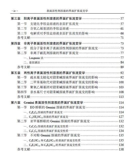 流体界面扩张流变学还处于快速发展之中,因此本书主要介绍其方法和应用实例,构架复杂的新型研究手段与应用之间的桥梁,让具有基础化学知识的读者掌握界面扩张流变研究手段。本书以表面活性剂溶液的界面扩张流变学研究为核心,全面介绍界面扩张流变学的基础知识,分类描述不同类型表面活性剂在空气-水和油-水界面的扩张流变性质;重点阐释通过界面扩张流变学研究手段获得流体界面吸附分子相互作用及微观行为的方式。在本书写作上,避免烦琐的数学推导和理论描述,以界面扩张流变方法的物理化学意义和仪器应用为重点,强调可操作性。