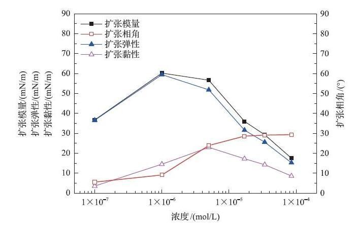 界面扩张流变参数与浓度的关系(悬挂滴方法)