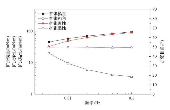 界面扩张流变参数与频率的关系(悬挂滴方法)