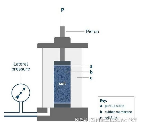 这里以有效应力来衡量剪切强度。试样饱和并允许在所需的约束压力下进行固结(土壤固结是改变其结构和含水量的过程)。一旦固结,试样就被施加了一定的荷载,在此期间不允许排水,以便测量孔隙压力。