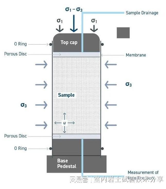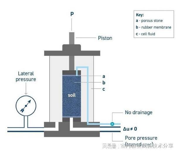 在不排水的测试中,不允许样品排水-其体积在此阶段不会改变,但形状会发生变化,导致孔隙压力发展,将进行测量。如果允许排水,在剪切阶段,水将从试样中排出,使试样的体积和形状发生变化,同时防止孔隙压力发生变化。