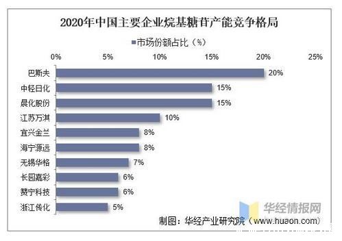 根据相关数据统计,2020年,国内现有烷基糖苷企业产能共20万吨,产量仅12.4万吨,产能利用率只有62%,行业产能过剩逐步凸显。