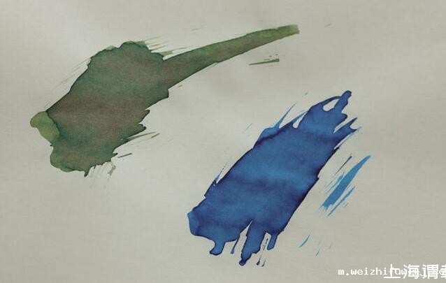 笼统来说,一般颜料墨水都是水溶性的,或者说绝大多数彩墨都是水溶性的,即便已经写在纸上(这里都只考虑普通的纸张,没有特殊的涂层),接触水以后也能很明显地看到它晕开甚至直接化掉;而碳素、纳米颗粒等制成的墨水,则是典型的“染料型墨水”,即便用水冲也不会被洗掉颜色。