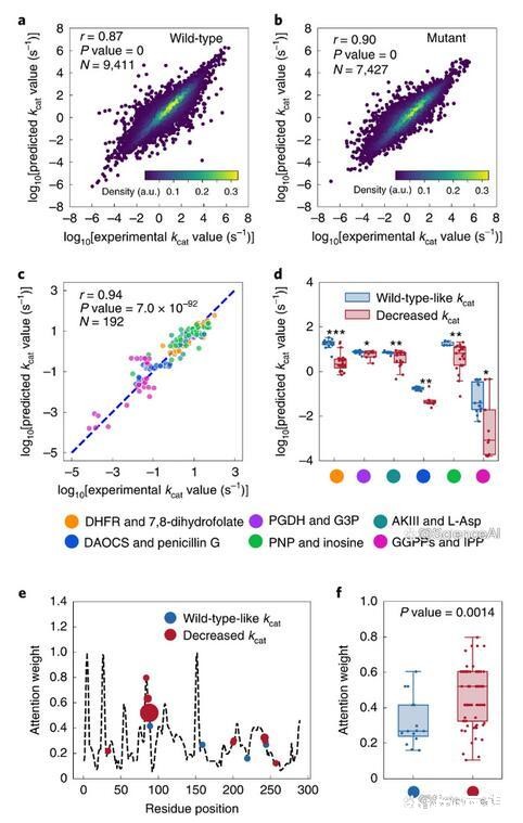 研究人员不仅确定了人PNP酶肌苷结合区域中氨基酸残基的高关注权重,而且还确定了具有高关注权重的各种非结合残基位点,这表明这些残基也可能对催化活性产生重大影响,值得进一步验证。DLKcat因此可以作为蛋白质工程工具箱的重要组成部分。