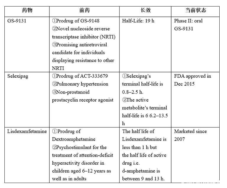 表1.FDA批准的长效前药