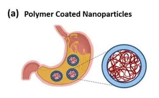 纳米颗粒的高表面积体积比,提高了药物的溶解性和稳定性。纳米粒的粒径范围一般为100~1000nm。药物可以被包裹在纳米颗粒中以获得持续释放,进而保护药物,免受剧烈的pH值变化和胃肠道恶劣的酶环境的影响。纳米颗粒的大小、形状、表面电荷会影响药物的药代动力学。