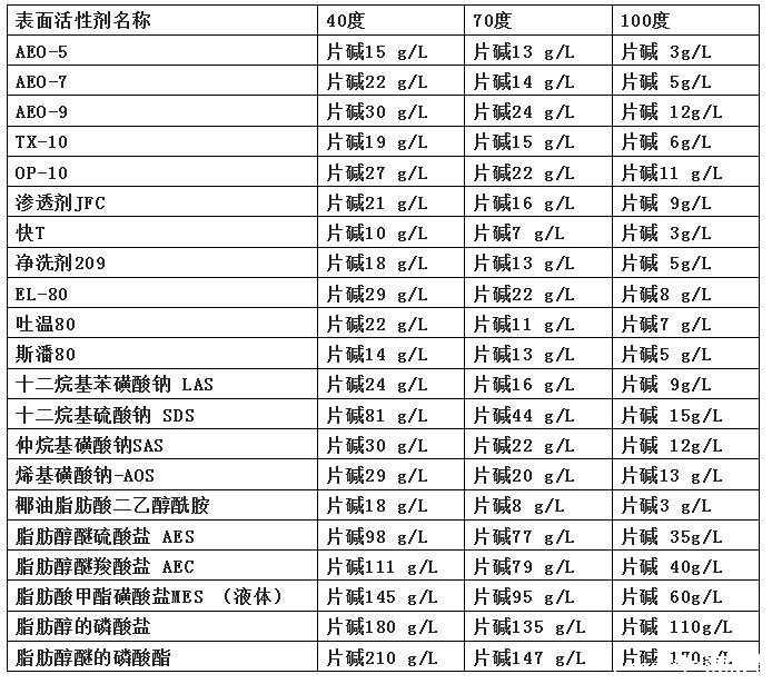 各种表面活性剂耐碱性一览表
