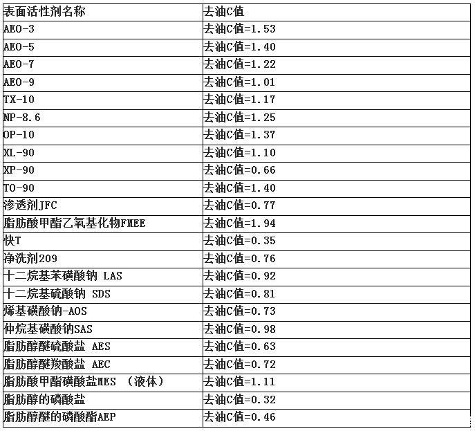 各种表面活性剂除油性能对比