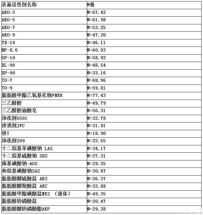 表面活性剂净洗性能一览表