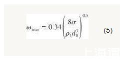当含表面活性剂射流离开喷嘴后,其表面会形成不稳定波。射流表面不稳定波随着射流的前进不断发展并最终导致了液体射流的破裂。从图5中可以看出,实验工况下,射流表面波动为正对称波;从图6中可以看出,射流破裂长度随着液体射流速度的增大而增大。因此,可以认为在实验工况下,含表面活性剂射流处于Rayleigh模式。在此射流破裂模式下,射流表面最不稳定波的增长率可以表示为[18]:
