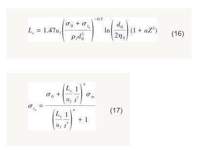 式中,η和η0分别为射流表面波动振幅和初始振幅,m。假设表面波振幅发展至射流半径时,射流发生破裂。因此,射流破裂长度可以表示为[9]: