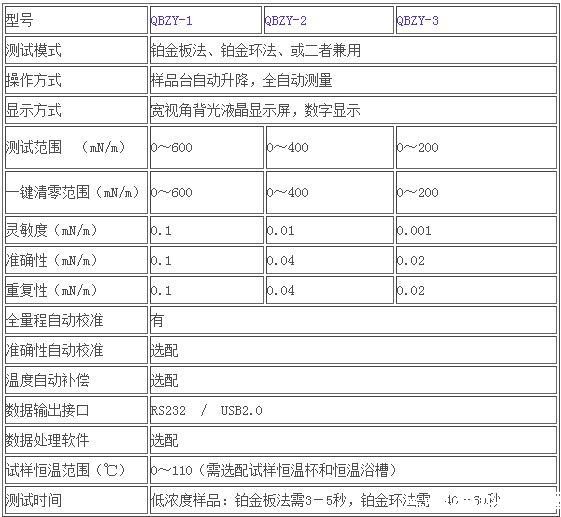 2.全自动测量,铂金板测试时,显示值即为表面张力值;