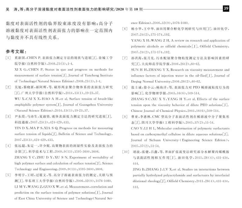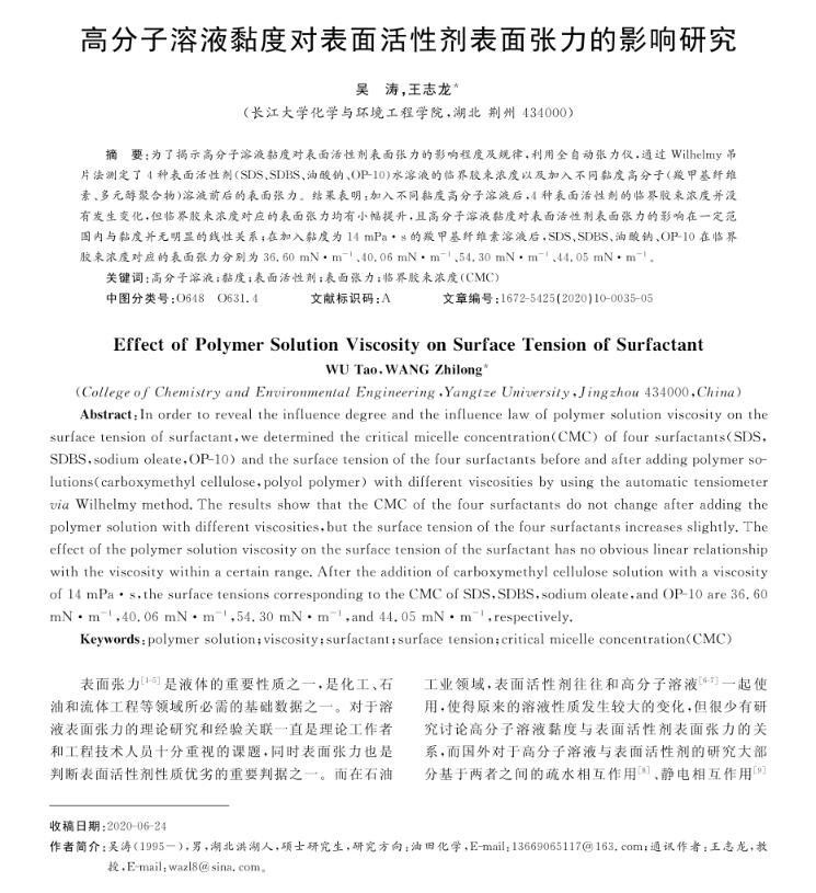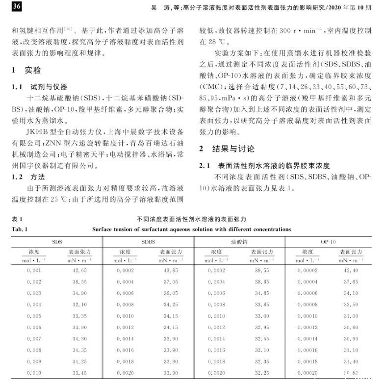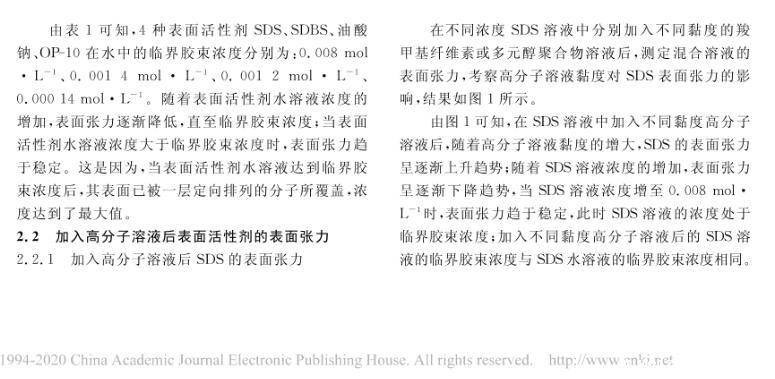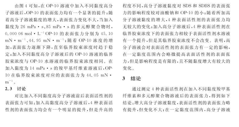 高分子溶液黏度对表面活性剂表面张力的影响研究