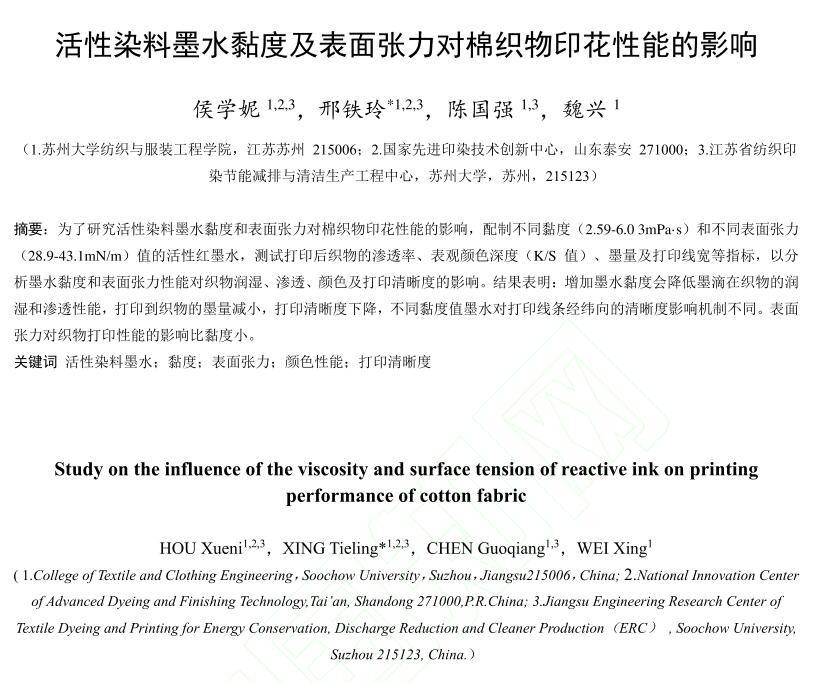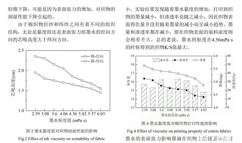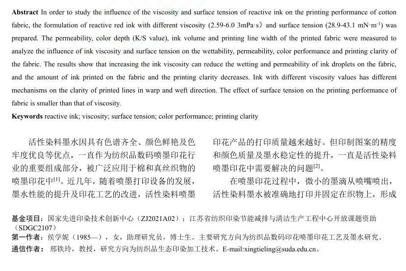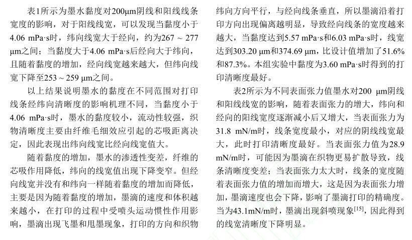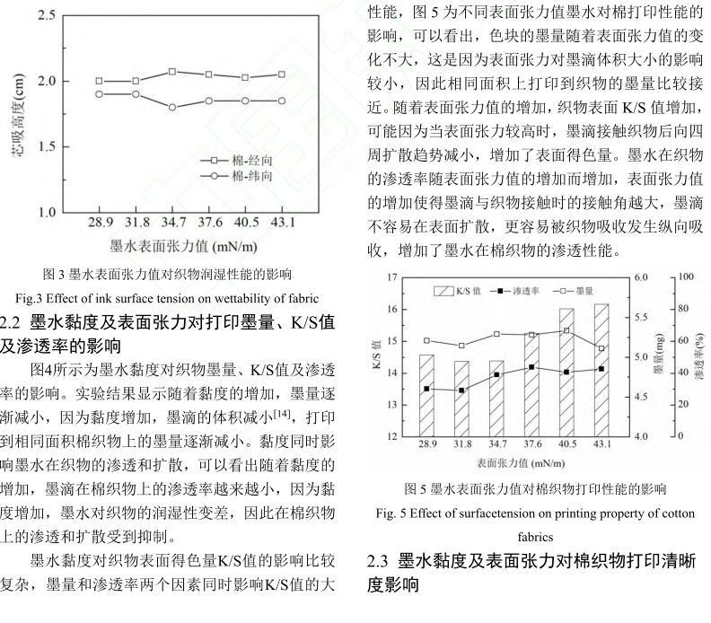 活性染料墨水黏度及表面张力对棉织物印花性能的影响