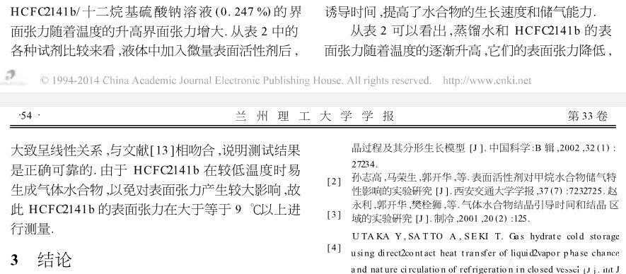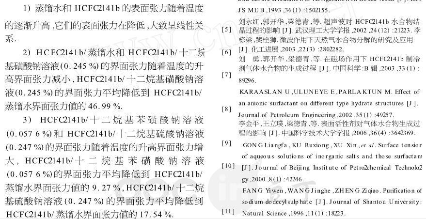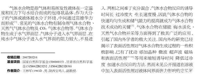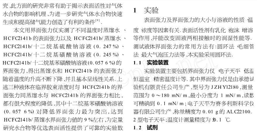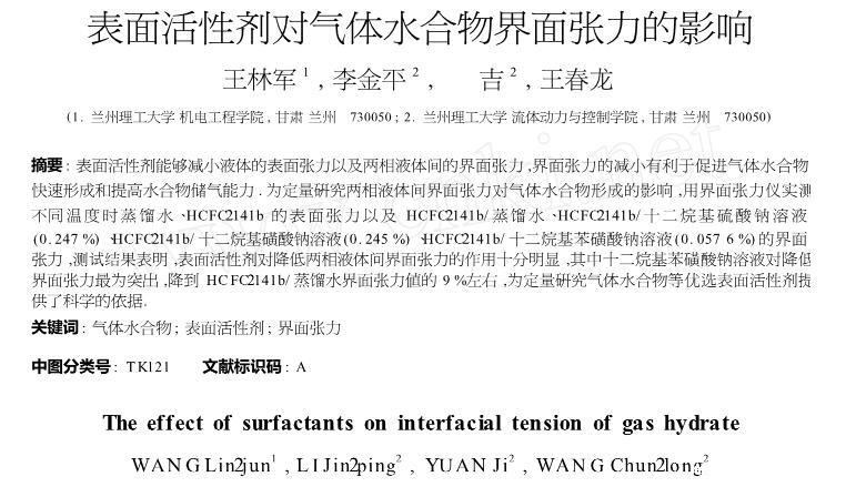 【摘要】:表面活性剂能够减小液体的表面张力以及两相液体间的界面张力,界面张力的减小有利于促进气体水合物快速形成和提高水合物储气能力.为定量研究两相液体间界面张力对气体水合物形成的影响,用界面18luck国际实测不同温度时蒸馏水、HCFC-141b的表面张力以及HCFC-141b/蒸馏水、HCFC-141b/十二烷基硫酸钠溶液(0.247%)、HCFC-141b/十二烷基磺酸钠溶液(0.245%)、HCFC-141b/十二烷基苯磺酸钠溶液(0.057 6%)的界面张力,测试结果表明,表面活性剂对降低两相液体间界面张力的作用十分明显,其中十二烷基苯磺酸钠溶液对降低界面张力最为突出,降到HCFC-141b/蒸馏水界面张力值的9%左右,为定量研究气体水合物等优选表面活性剂提供了科学的依据。