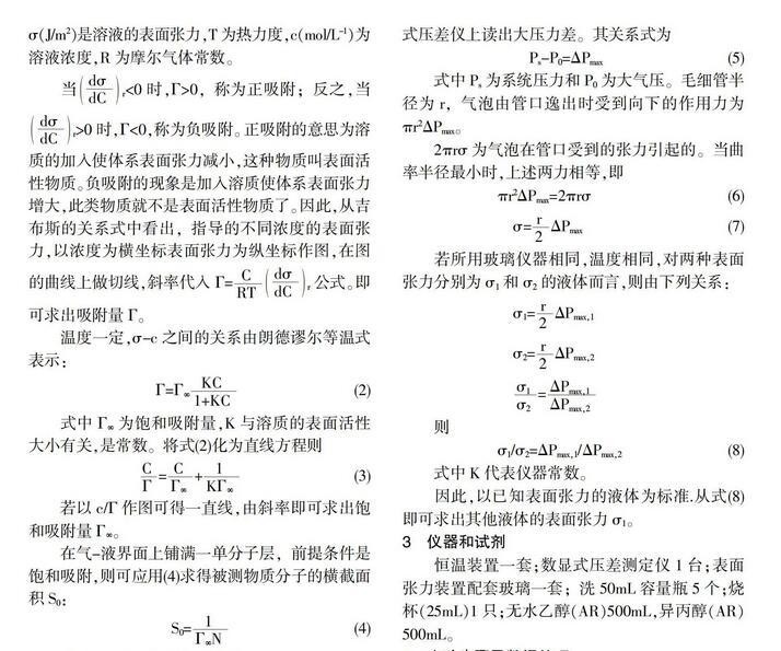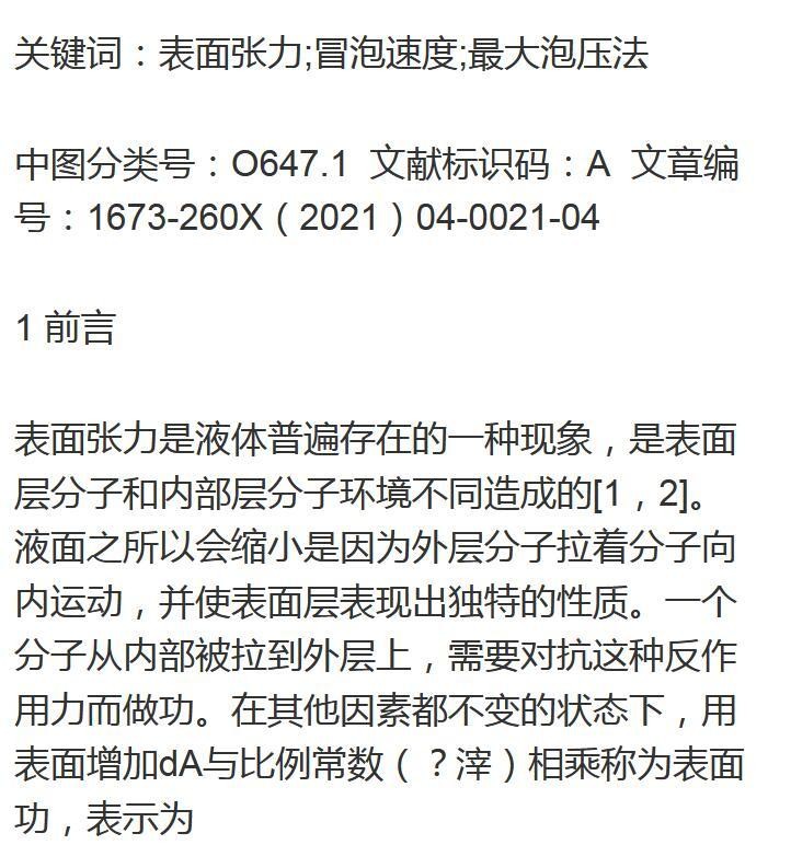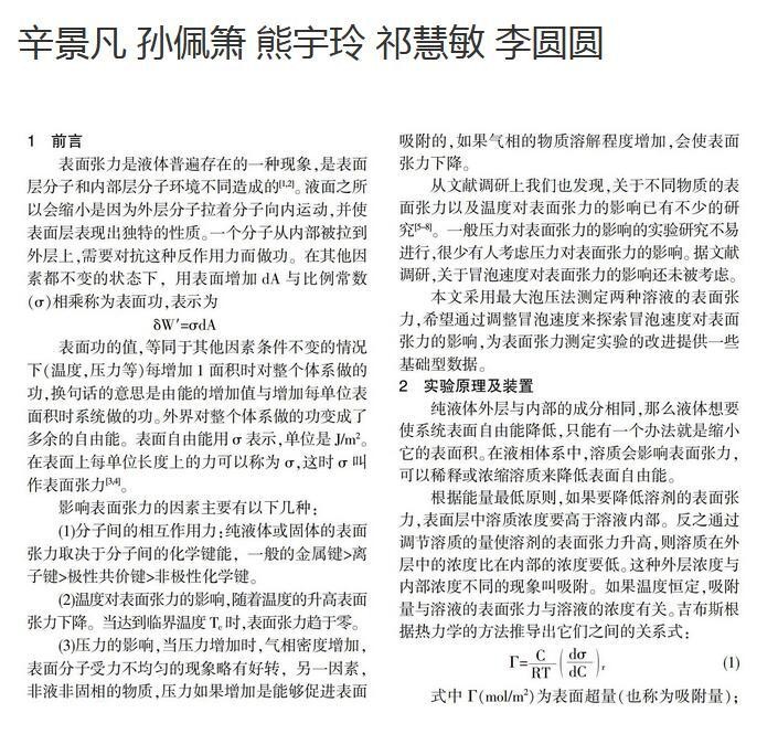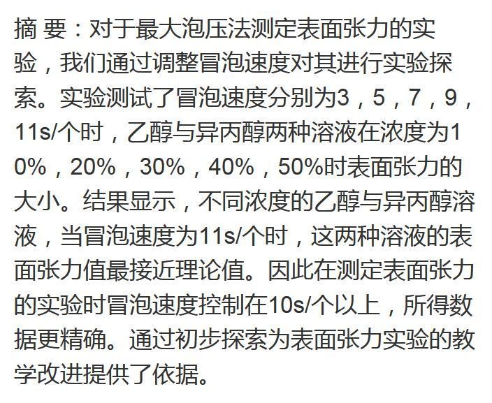 表面张力测定实验的改进——冒泡速度对其影响的初探