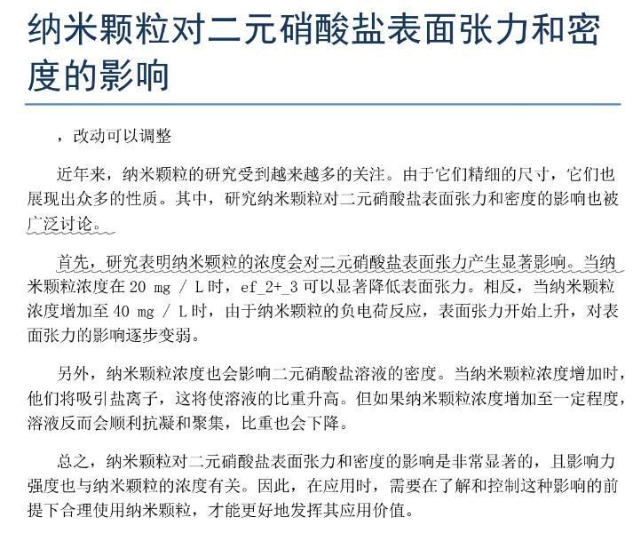 纳米颗粒对二元硝酸盐表面张力和密度的影响