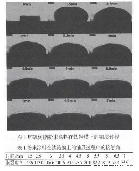 这说明环氧树脂粉末涂料对钛锆膜的润湿性良好,能够自发地在涂层表面进行铺展,且涂层具有良好的附着力。