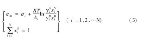 大多数关于液体混合物表面张力的描述都是建立在将液体表面层看作是一个气液相之间的独立的体系的假设之上的,基于这一假设,结合经典热力学理论,可导出关于液体混合物表面张力的计算公式Bulter首先于1932年从热力学理论出发,导出液体混合物表面张力的理论公式: