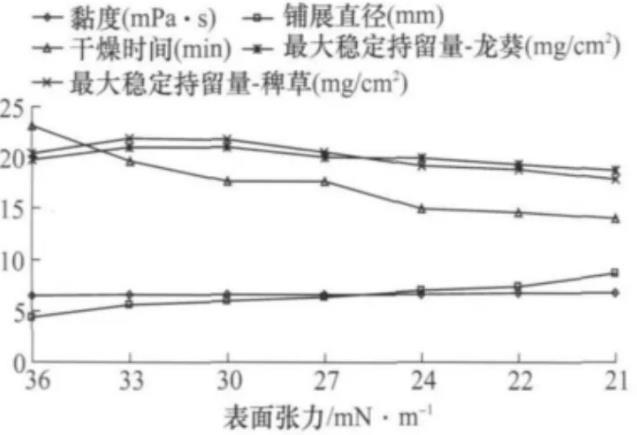 表面张力对草甘膦药液其他物理性状的影响