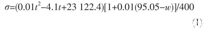 表面张力与物质的性质相关,也是物性之一。液体分子间作用力越大,表面张力越大。由于氢键的存在,水分子间作用力很大,所以水的表面张力较大。硫酸的表面张力也不小,在20℃下,w(H2SO4)95%硫酸表面张力是水的80%左右。硫酸温度提高,表面张力略有减小,但减小的速率比水要慢得多。随着硫酸浓度增大,表面张力逐渐减小。对于浓硫酸而言,表面张力可用式(1)计算: