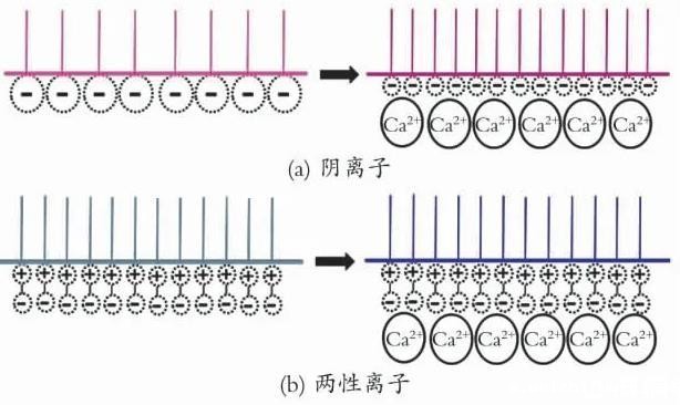 图1 Ca2+对不同类型表面活性剂界面排布的影响