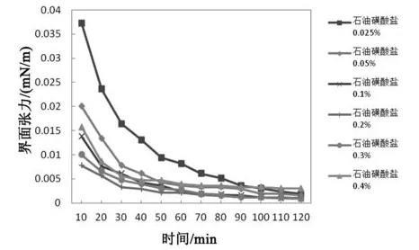 图1不同石油磺酸盐浓度下体系界面张力随时间变化规律