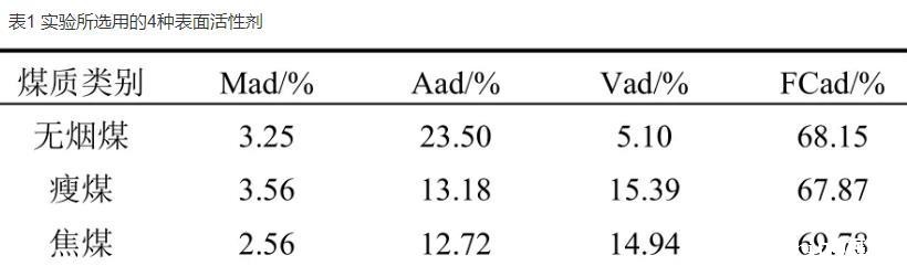 (3)表面活性剂因其自身的理化性质不同,其对不同煤质的润湿性也不同。