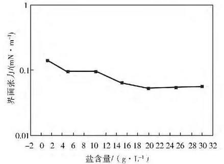 不同含盐量对表面活性剂界面张力的影响