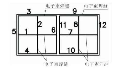 图1后舱管理装置下组件结构及电子束焊缝位置示意图