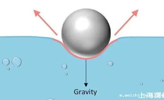 表面张力是使液体表面收缩的一种力,是表层分子之间相互吸引产生的。分子间力称为范德华力,同时包含吸引力和排斥力。当液体不受外力时,内部分子间也处于平衡的不受力状态,即吸引力和排斥力相等,分子们靠近一点就体现出排斥力,远离一点就体现出吸引力。而在液体表面上,经常有些能量高的分子挣脱了其他分子的吸引力而逃脱,这就是液体的气化。在这种作用下,液体表层分子间的距离比内部分子间的距离更大一些,分子间体现为拉力,这就是表面张力。表面张力的存在使液体表面趋向于面积最小,使液滴倾向于呈球形。这下明白为什么水滴是球形的了吧,其原因就是因为表面张力,要是没有表面张力,那水滴的形状千奇百怪,可能是方的,三角形、椭圆形等等